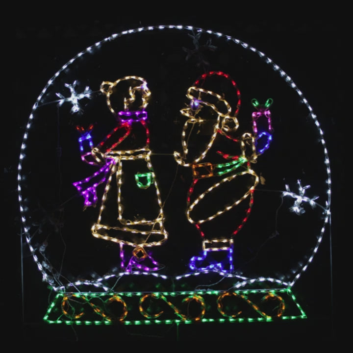 Animated Winter Snow Globe with Santa and Mrs. Claus