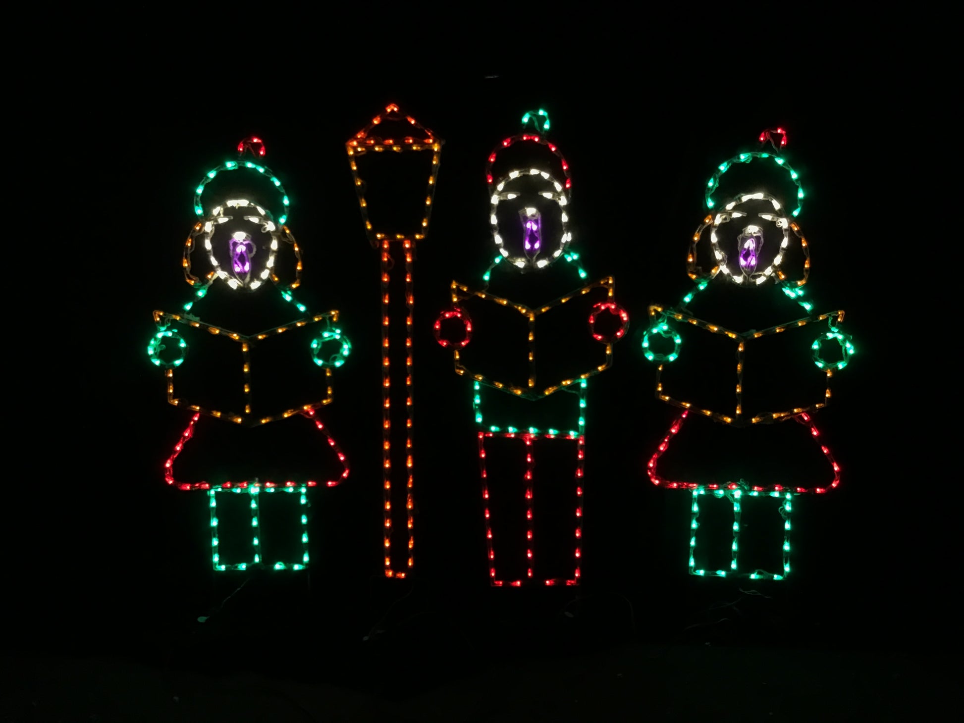 Male measures 59" T x 22" W, Female measures 56"T x 22"W, Lamp Post measures 59" T x 11" W (including ground stakes) Comes in 4 individual pieces for easy shipping and storage. LED M5 Lights
