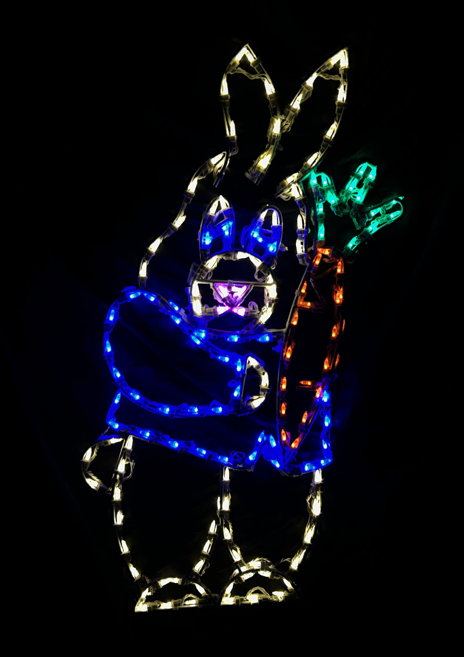 Hop into the Easter spirit with this charming lighted display! Our Curious Rabbit with Carrot features an adorable rabbit in his blue jacket clutching an orange carrot, perfect for brightening your seasonal décor.