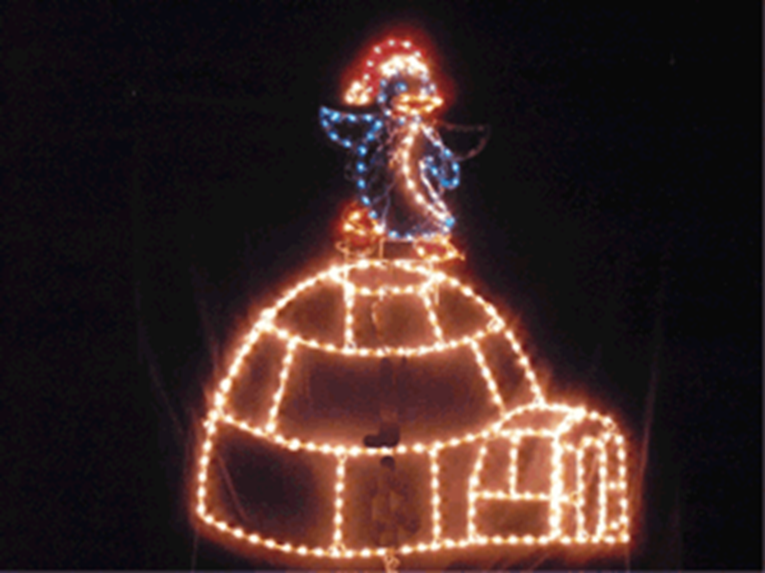 Measures 79"T x 58"W (including ground stakes) - LED M5 Lights - Item is shipped in 3 pieces for easier storage and will require additional support (not included).