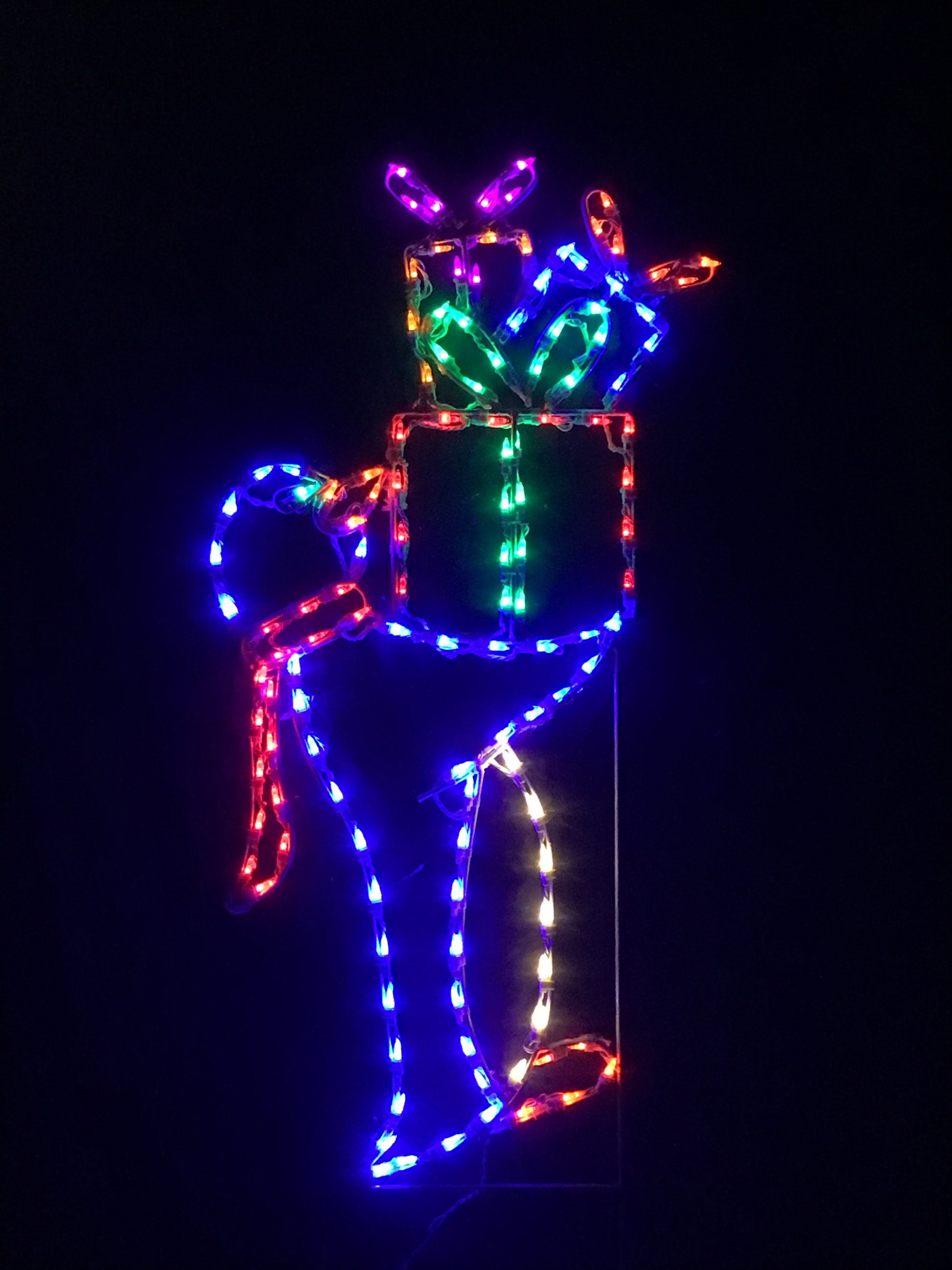 Measures 51" T x 23" W (including ground stakes) - with 135 LED M5 Mini Lights, painted with a gloss white Rust-Oleum. Perfect addition to any holiday display.