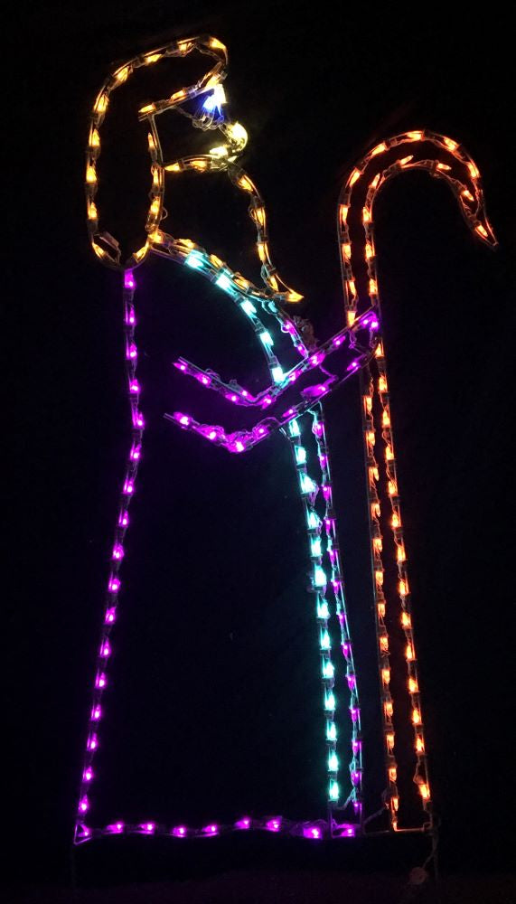 Measures 58"T x 26"W (including ground stakes) - lit with LED M5 mini lights