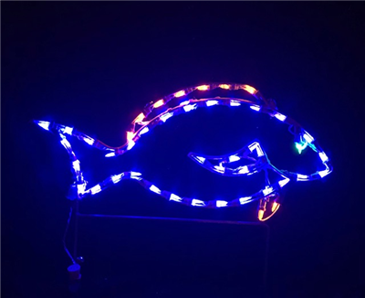 Tropical fish measures 19"T x 28"W and lit with LED M5 Mini lights.